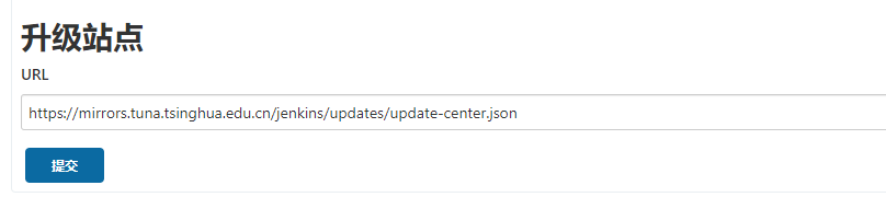 找到升级站点Update Site的位置,将刚才复制的清华源地址放进去,点击【提交】,那么后面更新插件都是从这个源下载安装,速度比较快。