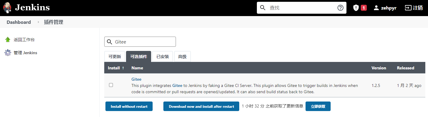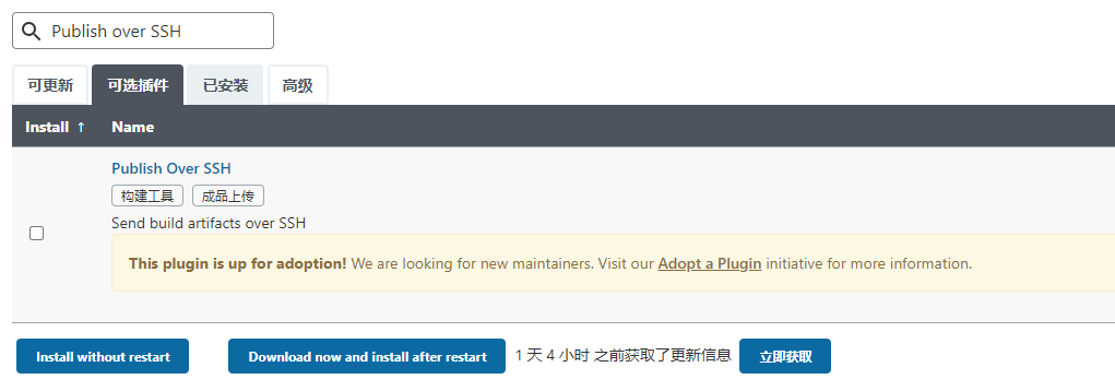 ::: warning 注意 安装完记得重启Jenkins,否则新安装的插件不会显示哦。 :::