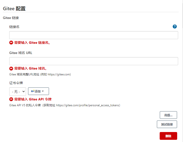 在Jenkins > 系统管理 > 系统配置 > Gitee配置 配置 Gitee