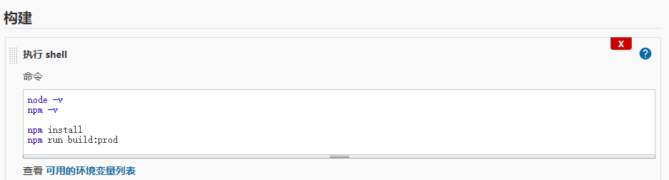 修改构建任务的构建环境,勾选 Provide Node & npm bin/ folder to PATH